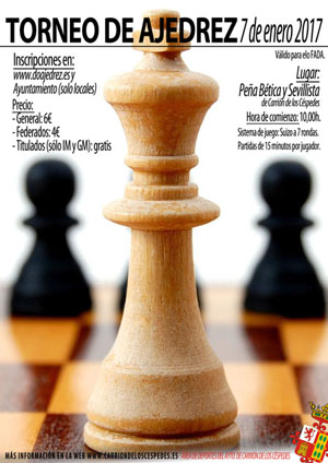 7 de enero de 2017 en las Peñás Bética y Sevillista. Válido para elo FADA. Inscripciones abiertas.