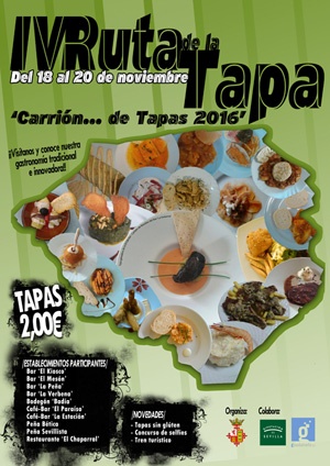 Por cuarto año consecutivo, el Ayuntamiento de Carrión de los Céspedes pone en marcha la Ruta de la Tapa: 'Carrión... de tapas' del 18 al 20 de noviembre de 2016.